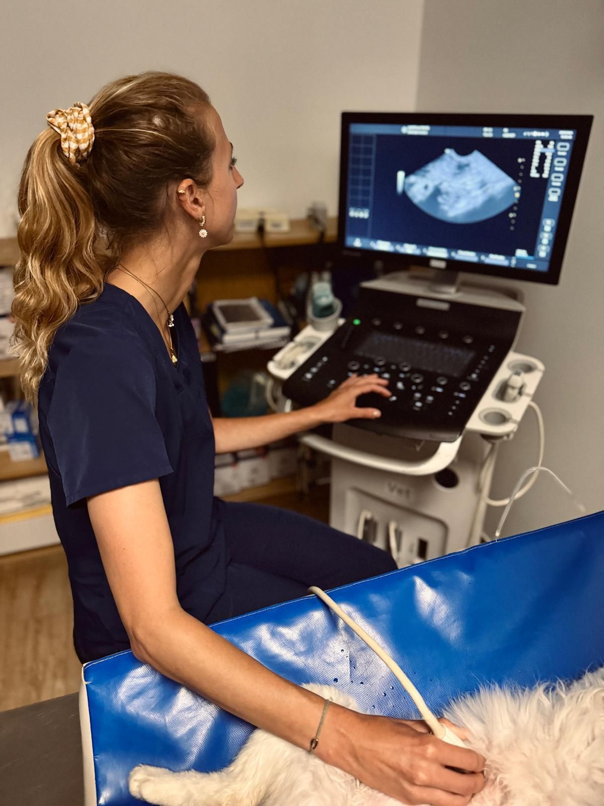 Suivi de chaleurs avec frottis vaginaux et dosage de progestérone, spermogramme, diagnostic échographique et suivi de gestation , mise bas, sont couramment pratiqués à la clinique.