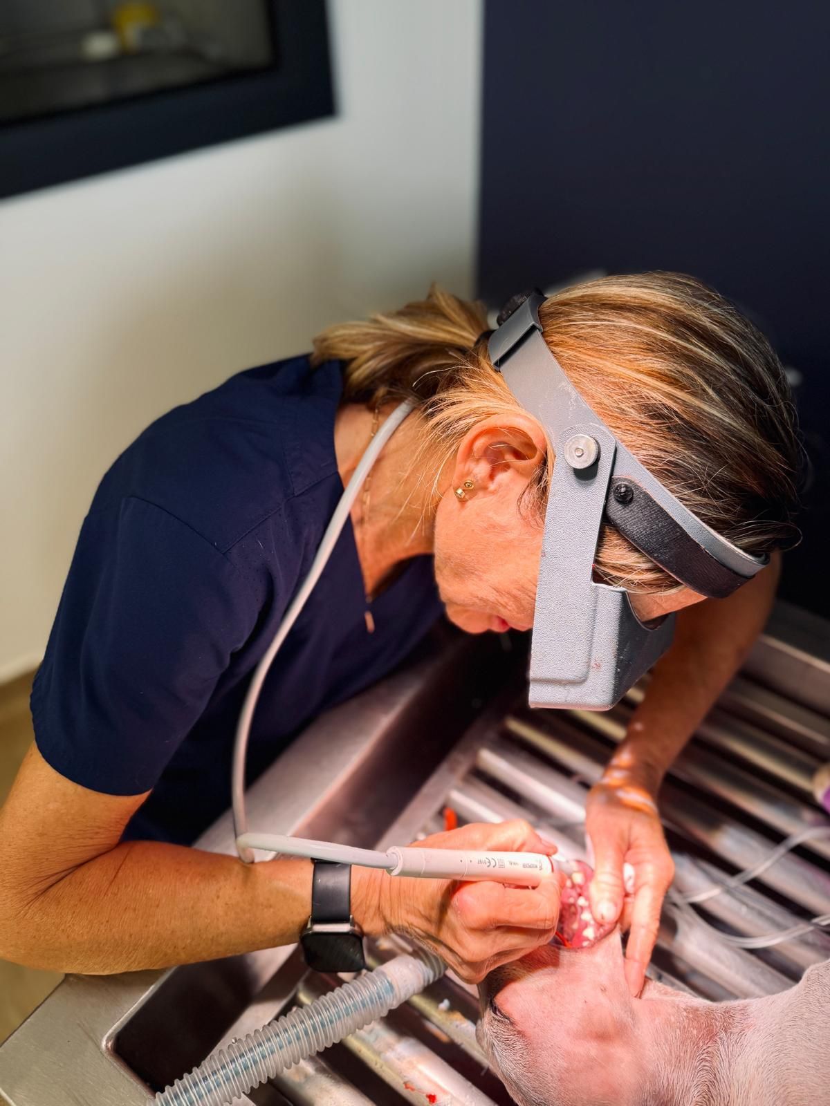 Equipés d'une unité dentaire complète, nous proposons tous les soins de parodontologie pour les chiens chats et NAC à poils.